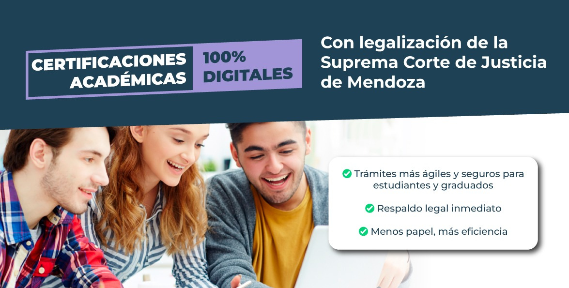 La universidad implementó un sistema de emisión y firma digital de documentos académicos, con posibilidad de legalización de la Suprema Corte de Justicia de Mendoza, agilizando trámites para estudiantes y graduados....